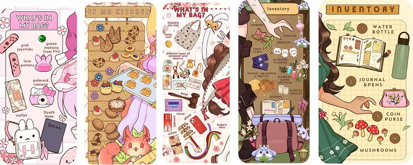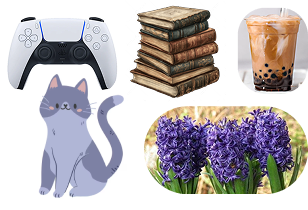 This could be anything like favorite songs, animals, games. Aside from songs, pls make sure to include reference pics for each item!
