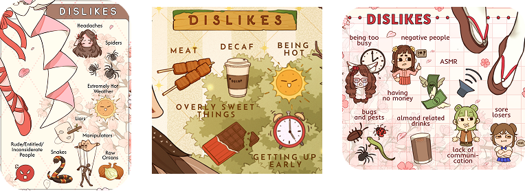 | 🌼 hates/dislikes panel (max: 5 things) |